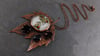 Item - Maple leaf pendant with a skull cabochon, two open seed pods and a round obsidian cabochon.
