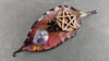 Item - Gum leaf brooch with a pentacle charm, a natural amethyst crystal point and open seed pod