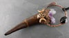 Item - Goat horn pendant with an amethyst cluster crown, a tiny pine cone, a tri moon charm and a carzy lace agate cabochon companion